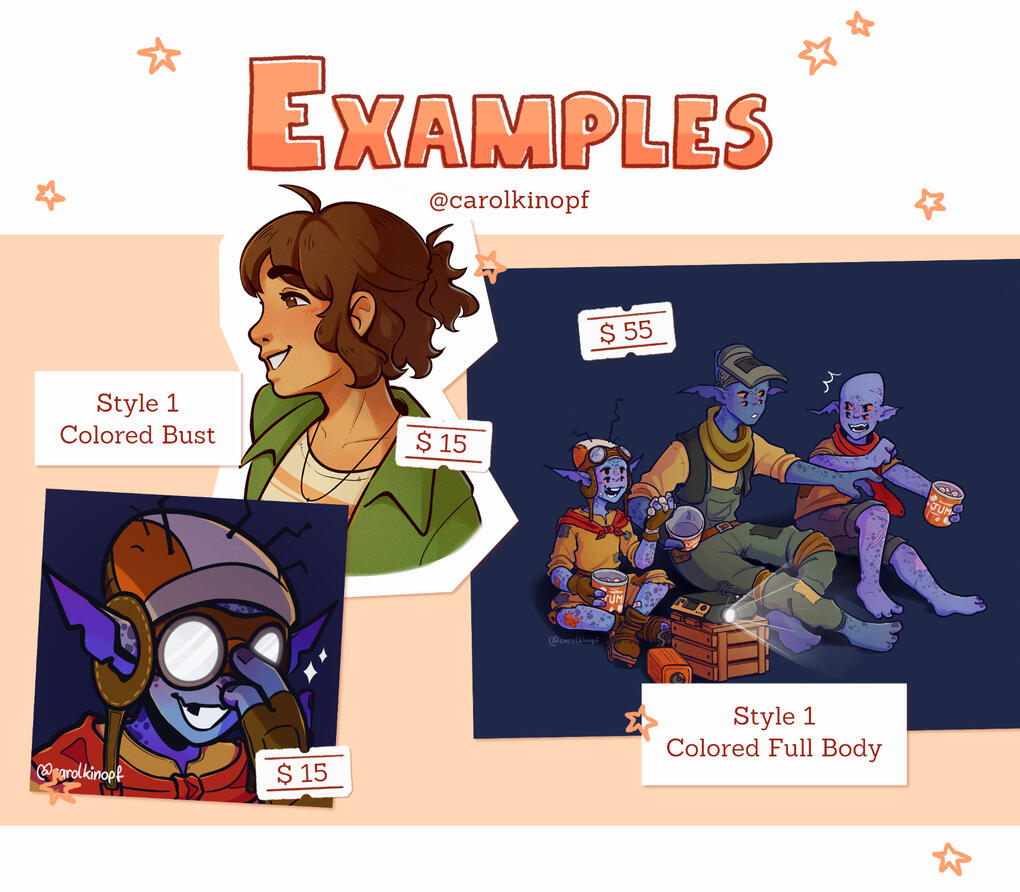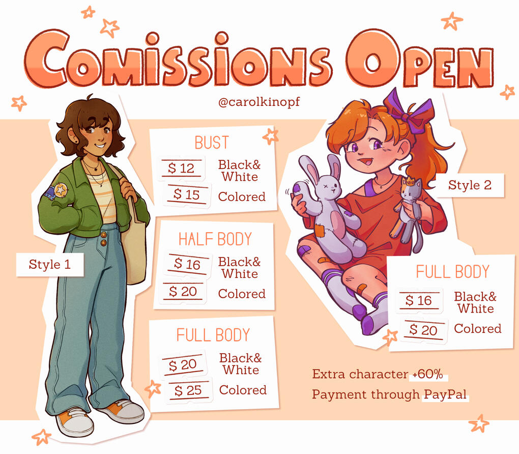 Which type of commission and style you want (Ex: Halfbody, black & white, style 1)
