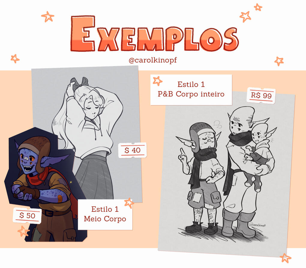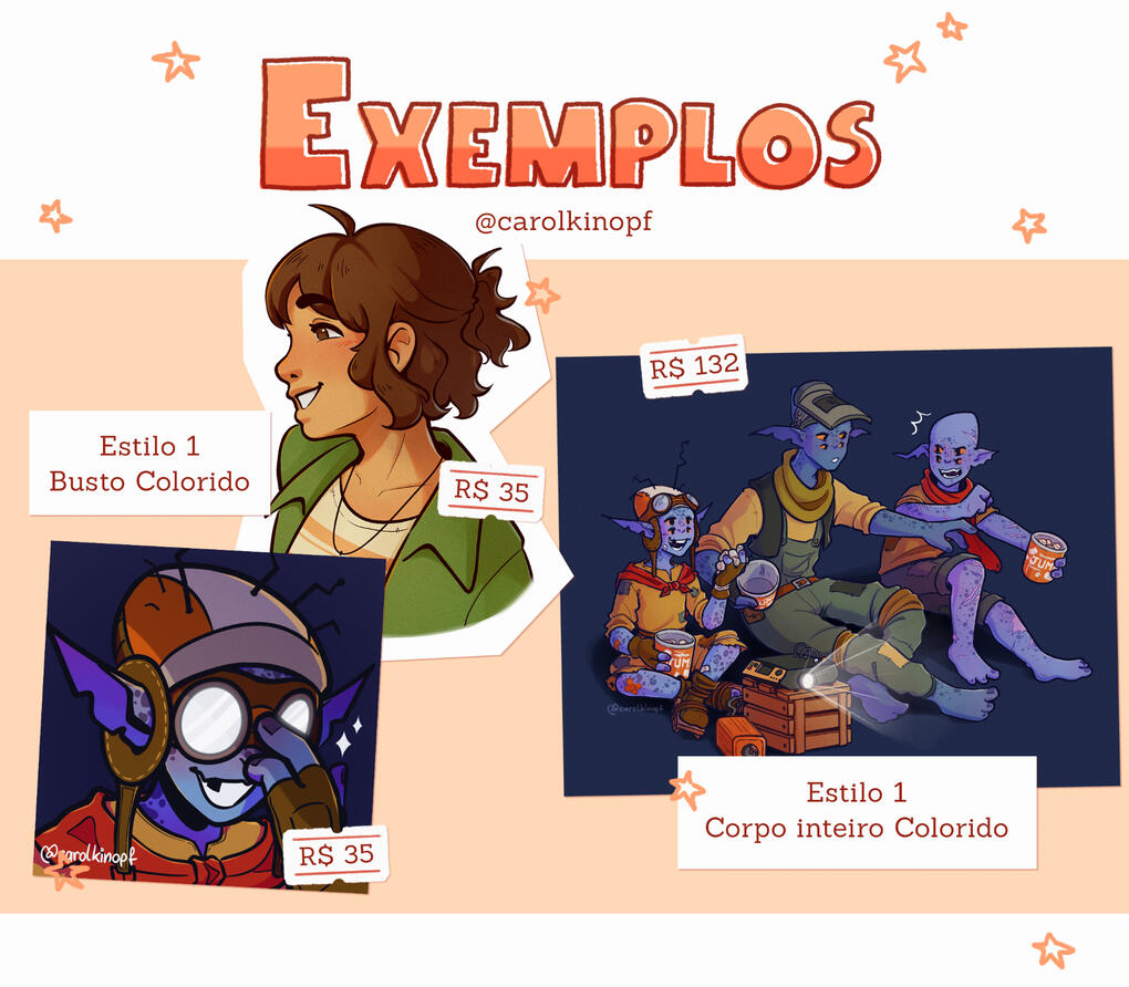 Informações adicionais: pequenas mudanças no personagens, poses específicas, outfits, e o que mais você quiser que esteja no desenho :)